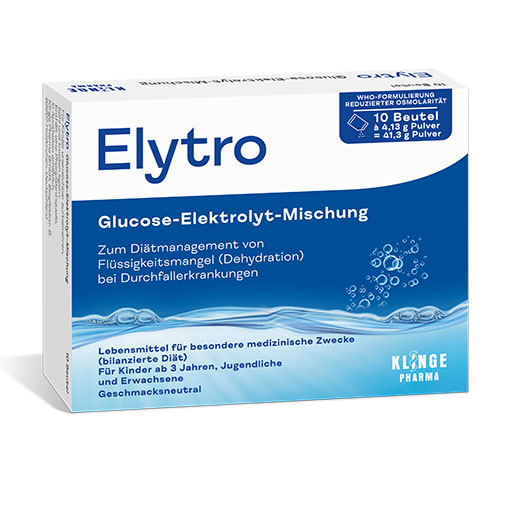 Hinweise: Geeignet für Kinder ab 3 Jahren, Jugendliche und Erwachsene. Nicht zur Selbstbehandlung schwerer Durchfälle verwenden, die länger als drei Tage andauern. Diabetikern soll Elytro nur nach Rücksprache mit dem behandelnden Arzt gegeben werden.