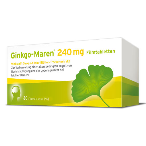 Zur symptomatischen Behandlung von hirnorganisch bedingten Leistungsstörungen im Rahmen eines therapeutischen Gesamtkonzeptes bei Abnahme bzw. Verlust erworbener geistiger Fähigkeiten (dementielles Syndrom) mit den Hauptbeschwerden: Gedächtnisstörungen, Konzentrationsstörungen, depressive Verstimmung, Schwindel, Ohrensausen, Kopfschmerzen. Das individuelle Ansprechen auf die Medikation kann nicht vorausgesagt werden. Bevor die Behandlung mit Ginkgo-Maren begonnen wird, sollte geklärt werden, ob die Krankheitszeichen nicht auf einer spezifisch zu behandelnden Grunderkrankung beruhen.