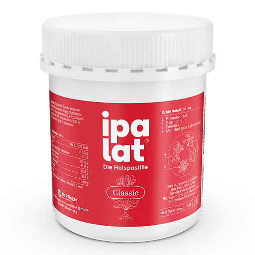 ipalat® Classic verbindet die wohltuende echte Naturkraft der Primelwurzel mit dem angenehmen Geschmack aus der einzigartigen Zubereitung mit Anis, Fenchel und Honig. Beim Lutschen der Pastille bildet sich ein wohltuender Film im Rachen. ipalat® Classic ist Balsam für den Hals.