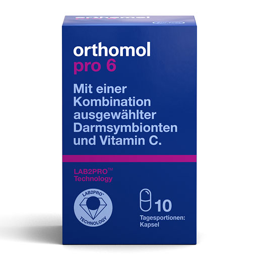 Orthomol Pro 6 ist ein Nahrungsergänzungsmittel. Es enthält eine Kombination ausgewählter Darmsymbionten und Vitamin C.