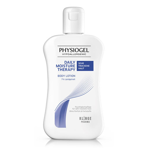 Die PHYSIOGEL® Daily Moisture Therapy Linie für sehr trockene Haut bietet hier eine Lösung, indem sie der Haut die benötigte Feuchtigkeit spendet Die Bodylotion mit 7 % Lipidgehalt ist eine tägliche Pflegelotion, die speziell für sehr trockene Haut entwickelt wurde, die oft unter Spannungsgefühlen und Schuppenbildung leidet. Sie verzichtet sie auf potenzielle Allergieauslöser wie Duft und Farbstoffe und ist so auch besonders für empfindliche Haut geeignet.