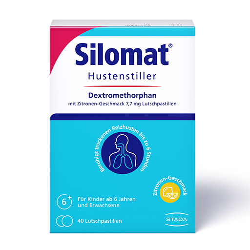 Dextromethorphan, der am besten untersuchte hustenstillende Wirkstoff der Welt in den Silomat® Lutschpastillen mit Zitronengeschmack, dämpft die Wahrnehmung des Hustenreizes. So können sich die Schleimhäute in den Bronchien erholen und auch Sie können wieder zur Ruhe kommen. Das Lutschen schafft bereits erste Linderung während sich die Wirkung sukzessive aufbaut.