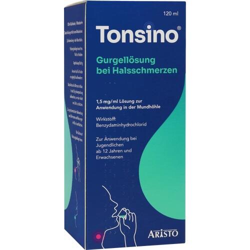 | Produktname | Tonsino Gurgellösung bei Halsschmerzen 1,5 mg/ml Lösung zur Anwendung in der Mundhöhle |