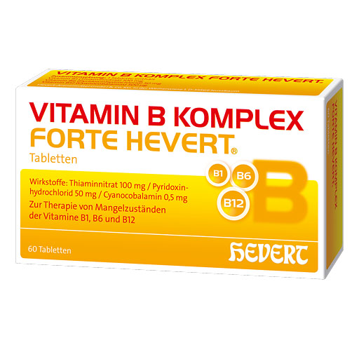 Das rezeptfreie, apothekenpflichtige Arzneimittel Vitamin B Komplex forte Hevert versorgt den Körper schnell und hochdosiert mit B-Vitaminen und lindert Symptome eines Vitamin B-Mangels, zum Beispiel Kribbeln, Brennen, Taubheitsgefühle oder Schmerzen in Händen und Füßen bei Neuropathien. Auch bei chronischen Schmerzen im Bewegungsapparat, können B-Vitamine die Nervenfunktion verbessern und so Beschwerden reduzieren.