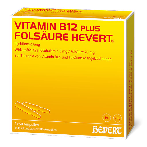 VITAMIN B12 PLUS Folsäure Hevert a 2 ml Ampullen 2X100X2 ml