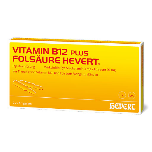 VITAMIN B12 PLUS Folsäure Hevert a 2 ml Ampullen 2X5X2 ml