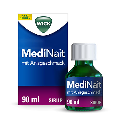 Bei Erkältungen trägt WICK MediNait mit Anisgeschmack durch Symptomlinderung zu einem erholsameren Schlaf bei. Der Erkältungssirup zur Linderung mehrerer Symptome wurde speziell ohne Alkohol entwickelt, um bei Erwachsenen und Jugendlichen ab 12 Jahren Erkältungsbeschwerden über Nacht zu lindern und so für einen erholsameren Schlaf zu sorgen. (2)